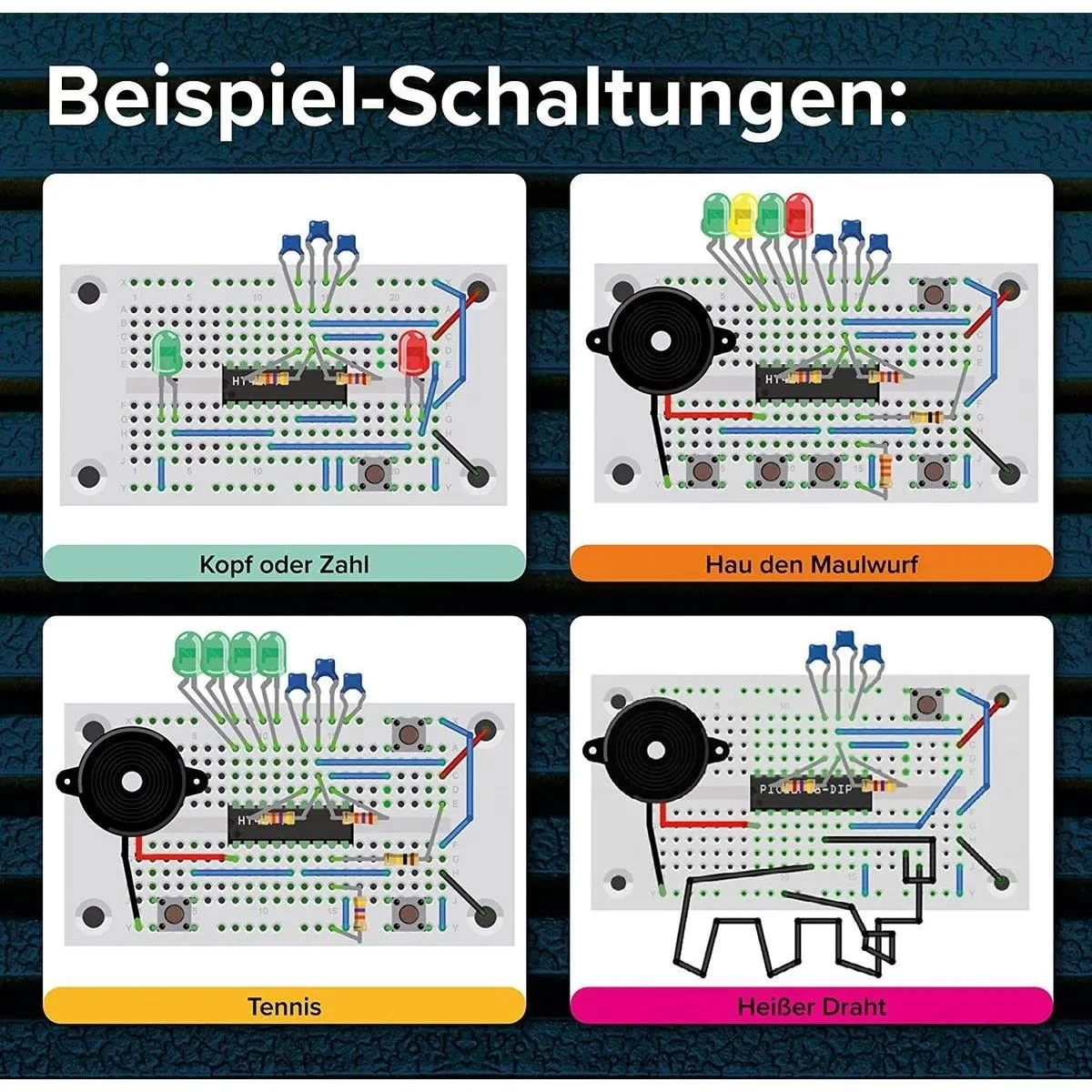 Hinter 24 Türchen verstecken sich Komponente die zusammen mit dem vorprogrammierten Steckboard und dem 52-seitigem Handbuch eine vielzahl an verschiedenen Spielen auf deiner eigenen Retrokonsole ermöglichen. Folgende Spiele kannst du dir mit diesem Adventskalender zusammenbasteln: Heißer Draht, Tennis, Hau den Maulwurf, Kopf oder Zahl, Quiz-Buzzer, Spiel mir ein Lied, Lügendetektor, Tresorknacker, Bombe entschärfen, Hörtest und Senso.