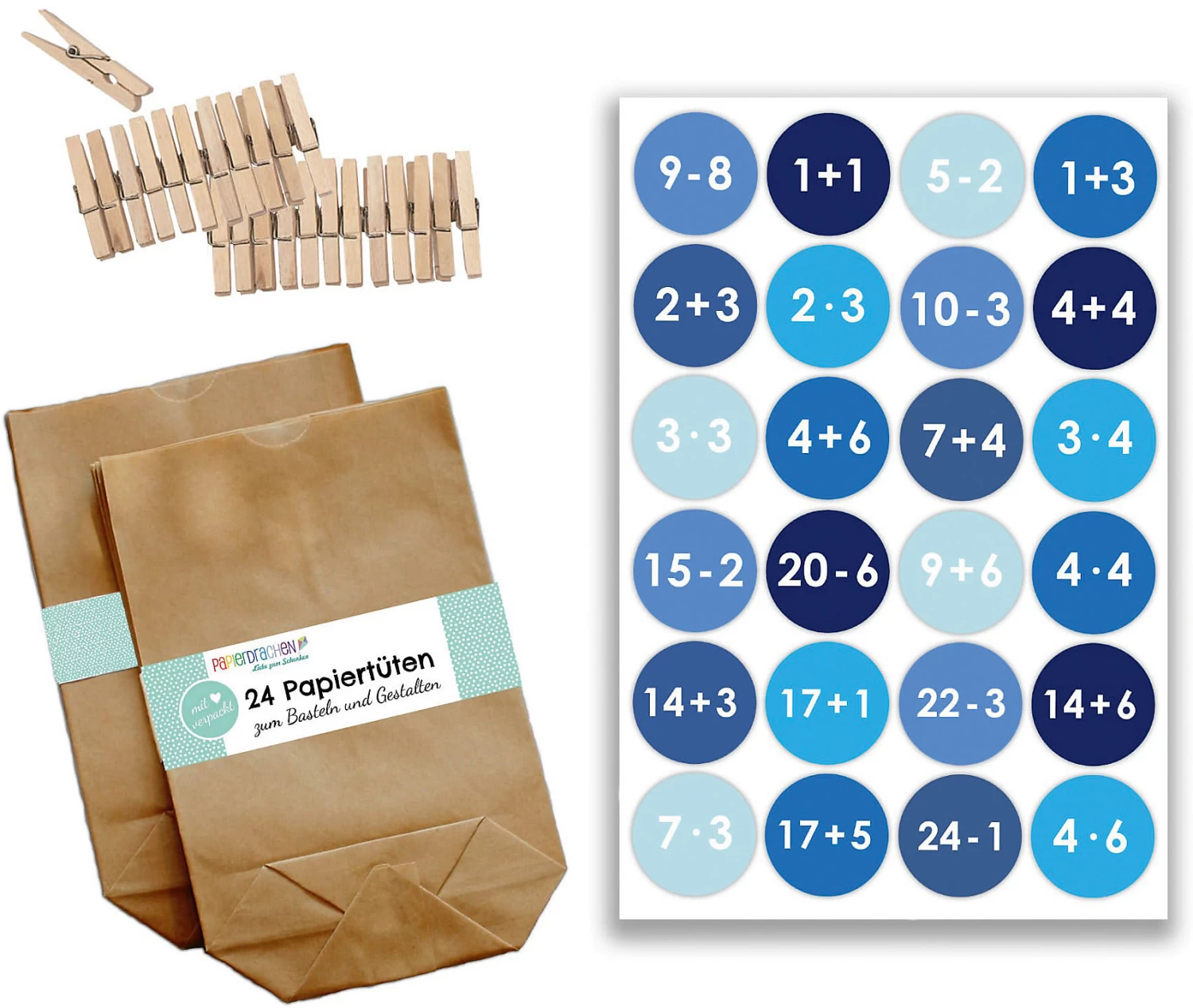 Hier muss gerechnet werden, um herauszufinden, welches Tütchen ausgepackt werden darf: das Adventskalender Geschenktüten-Set mit Klammern!