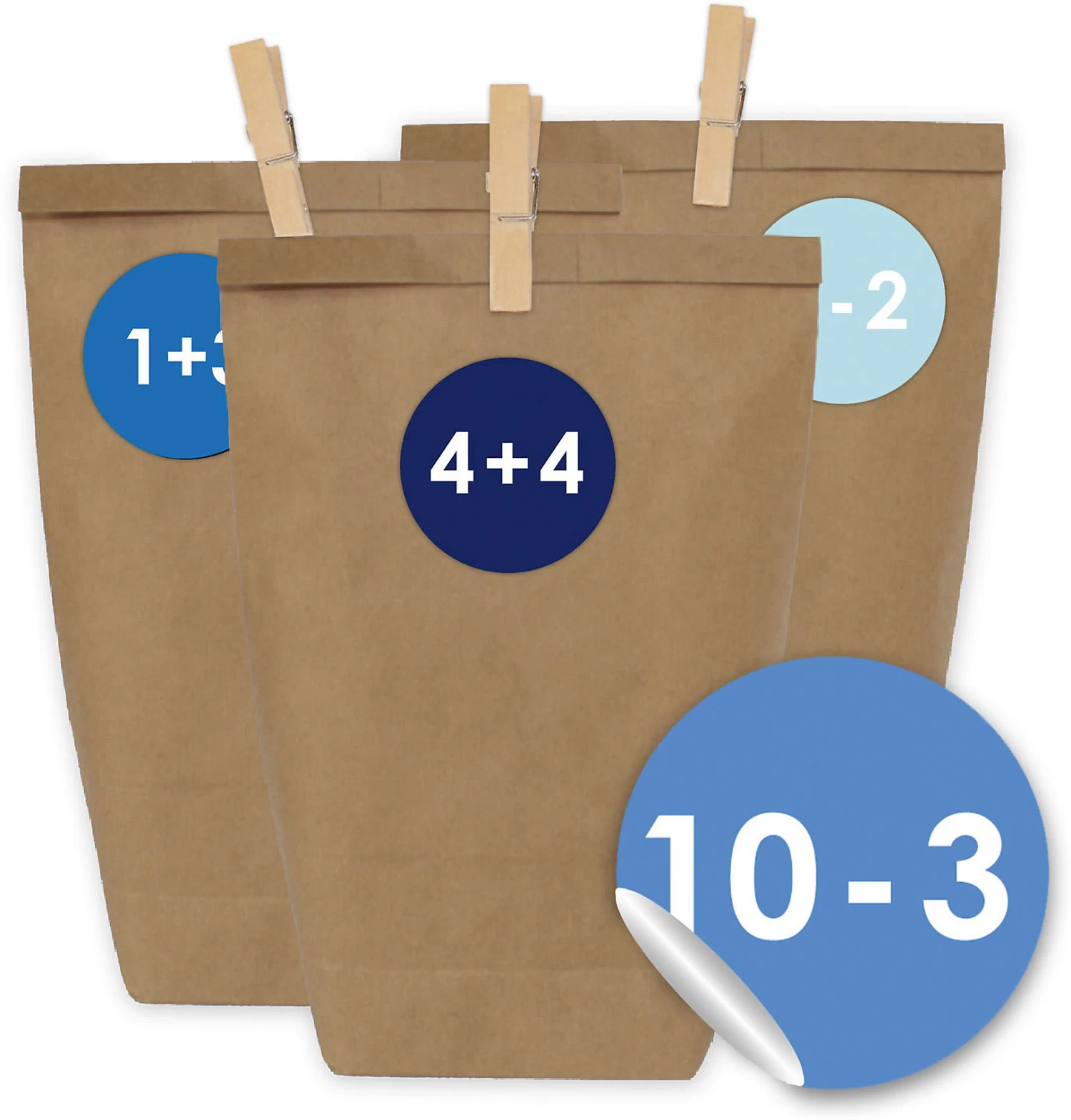Dieses DIY Set bietet alles, was es braucht, um einen individuellen Adventskalender zu basteln. Der Weihnachtskalender besteht aus 24 naturbraunen Kraftpapiertüten und mitgelieferten Zahlenaufklebern. Damit wird jeder Adventskalender ein echter Hingucker. Papiertüten, Zahlenaufkleber und Holzklammern sind enthalten, sodass der Bastelspaß sofort losgehen kann.