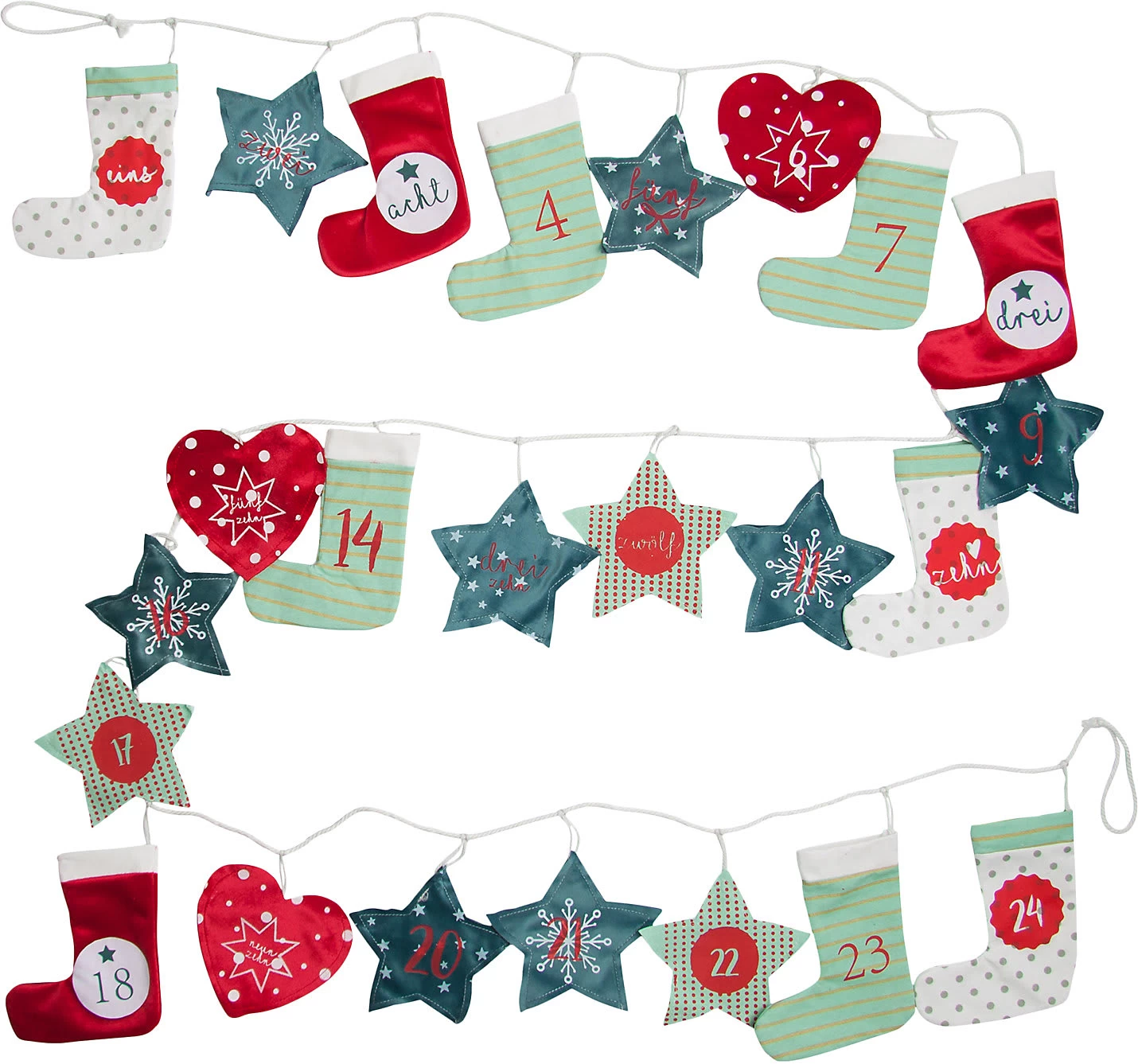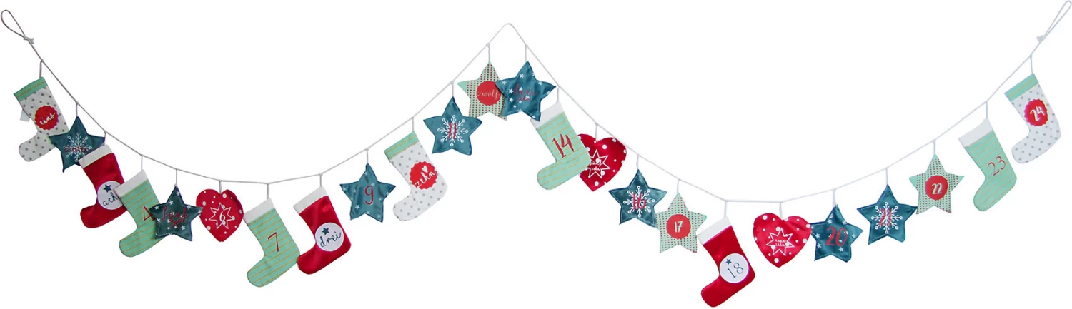 Die Vorfreude auf Weihnachten wird mit unserem tollen Adventskalender aus Stoff unvergesslich! Der Kalender besteht aus 24 Säckchen in verschiedenen Farben, Formen und Größen (11cm x 12cm – 16cm x 12cm). Die einzelnen Beutel sind an einer Schnur befestigt, wodurch sich der Weihnachtskalender prima aufhängen lässt. Mit diesem Adventskalender machst du Deinen Liebsten auf jeden Fall viel Freude – befülle ihn individuell mit Süßigkeiten oder kleinen Geschenken!