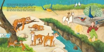 Das neue Soundbuch mit Pust-Licht-MagieDer Tierpfleger und sein quiekendes Lama Ludwig drehen ihre Abendrunde und wünschen allen Tieren eine gute Nacht. Doch aufgepasst und hingeschaut: Was tun denn der Pinguin, das Erdmännchen, der Papagei und der Fasan? Dieses Soundbuch wird kleine Zoofans nicht nur wegen der Tierlaute, der wunderbaren Einschlafmelodien und der magischen Lichter begeistern, sondern auch durch die witzige Nebengeschichte, die in den Bildern zu entdecken ist: Denn die Kinder sehen und wissen mehr als der Tierpfleger, was da gerade so los ist in seinem Zoo.