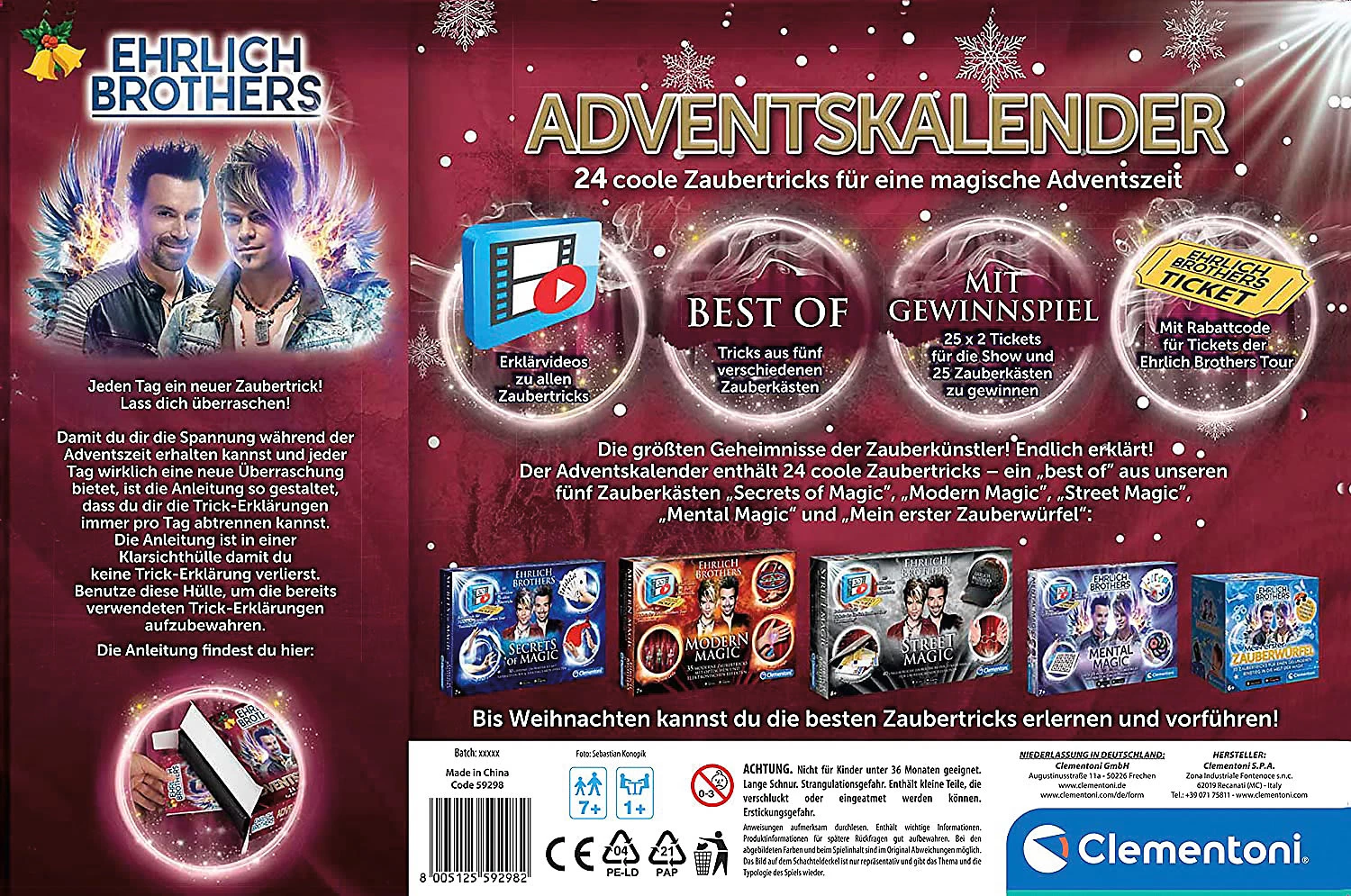 Jetzt wird es magisch! Mit diesem Adventskalender der Magie gehen die Nachwuchs-Zauberer mit den Ehrlich-Brothers auf eine magische Reise durch die Welt der Zauberei. Auch die Brüder haben mit einem Zauberkasten einst angefangen und verraten mit diesem coolen Adventskalender einige ihrer Tricks, die wirklich alle zum Staunen bringen. Hinter den 24 Türchen verstecken sich 24 Tricks für eine magische Adventszeit. An Weihnachten kann das Familien-Publikum dann überrascht werden. Die bebilderte Anleitung erklärt die Zaubertricks Schritt für Schritt und es gibt zu jedem Trick ein Video online.