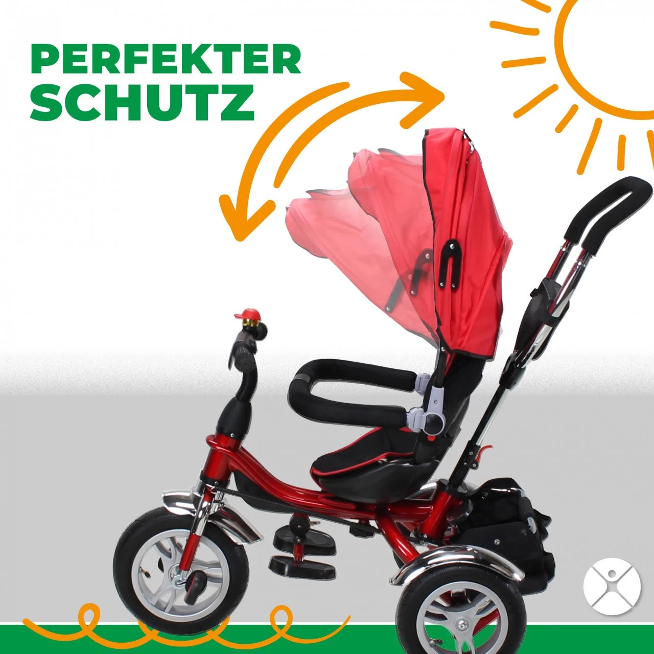 Weitere Funktionen: Sonnendach verstellbar und abnehmbar, Tasche für den kleinen Einkauf, Antirutschgriffe am Lenker