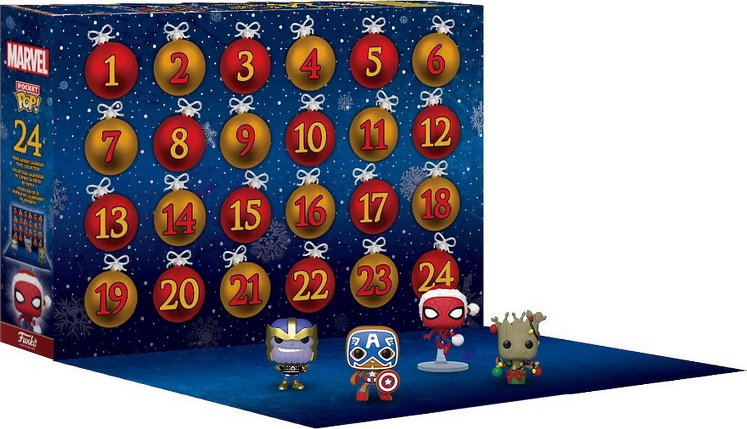 Neuer Sammel- und Spielespaß für Superhelden-Fans! In dem Adventskalender von Funko verstecken sich hinter 24 Türchen tolle Sammel- und Spielefiguren aus dem Marvel Universum. Der Kalender begeistert im winterlichen Design und wird die Wartezeit bis Weihnachten verkürzen. Mit dabei sind die Lieblingscharaktere zum Sammeln und Ausstellen.