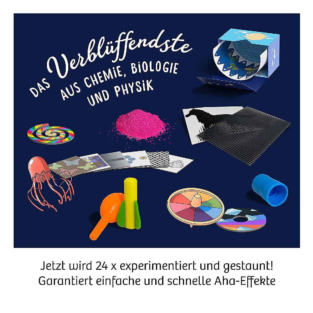 Warten kann so zauberhaft sein! Insgesamt 24 spannende Zaubertricks wollen mit dem MAGIC Adventskalender bis Weihnachten einstudiert zu werden. So wird das Warten auf Heiligabend für Nachwuchs-Magier ab 8 Jahren so spannend wie noch nie. Hinter jedem Türchen verbirgt sich ein raffiniertes Zauber-Utensil, mit dem Tag für Tag ein neuer Zaubertrick eingeübt wird. Damit die Spannung bis zum Schluss bleibt, ist die ausführlich bebilderte Anleitung mit einer japanischen Bindung ausgestattet. Mit diesem Zauberprojekt werden Feinmotorik und Selbstbewusstsein ganz natürlich gefördert. Die aufgeklappte Verpackung verwandelt das weihnachtliche geschmückte Wohnzimmer in Windeseile in eine Zauberbühne und dann heißt es: Vorhang auf für die große Zaubershow! Inhalt: 24 Zauberutensilien für magische Tricks, farbiges Anleitungsbuch mit japanischer Bindung