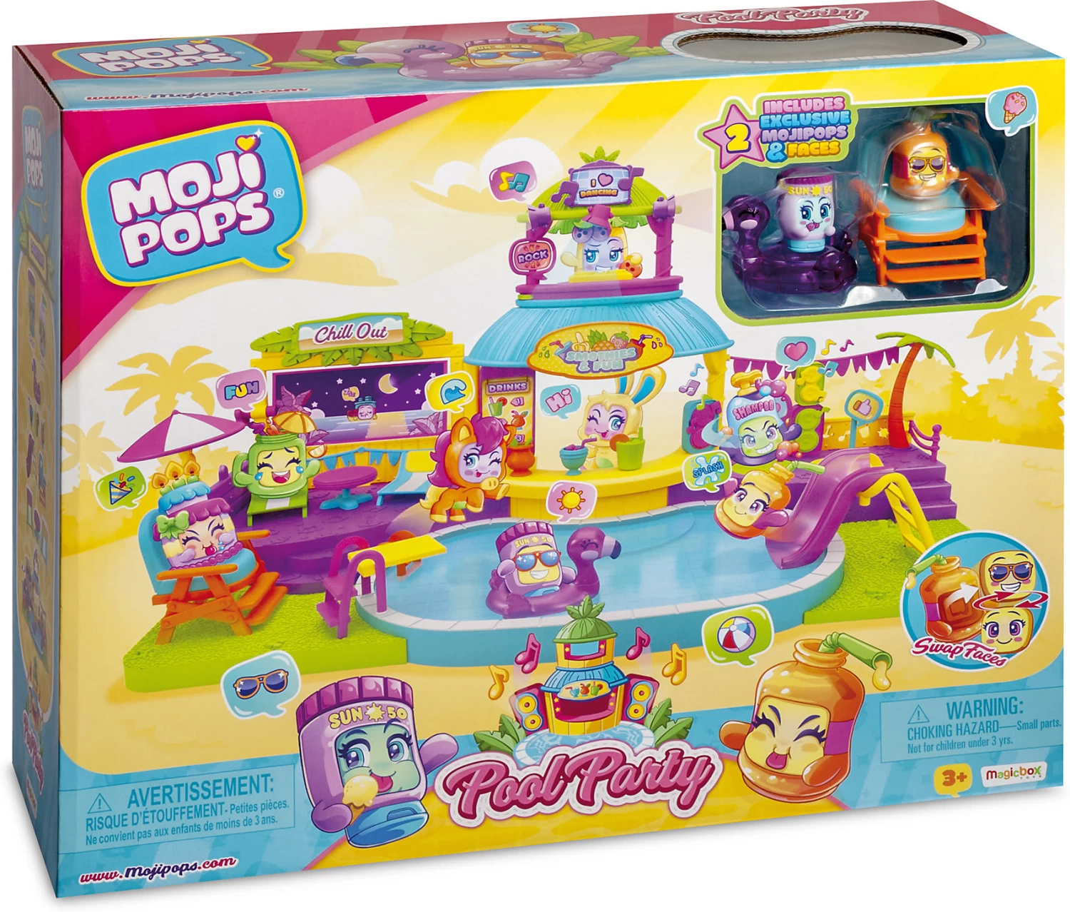Die niedlichen „MojiPops“ sorgen bei Kindern für so viel Begeisterung! Die Stimmung der tollen Figuren lässt sich im Handumdrehen ändern, indem einfach die Gesichter ausgetauscht werden. Mit dem umfangreichen Pool Party Spiel-Set von ASS werden Kinder zu vielen lustigen und spannenden Geschichten inspiriert, die sie dann mit den Figuren nachspielen können. Dank der wechselbaren Gesichter kann die Stimmung der „MojiPops“ optimal an verschiedene Situationen angepasst werden. Mit dem umfangreichen Pool Party Spiel-Set können die Figuren sich auf der Rutsche austoben, in dem Ruhebereich entspannen und dabei einen leckeren Saft schlürfen oder zur Musik des DJs tanzen.