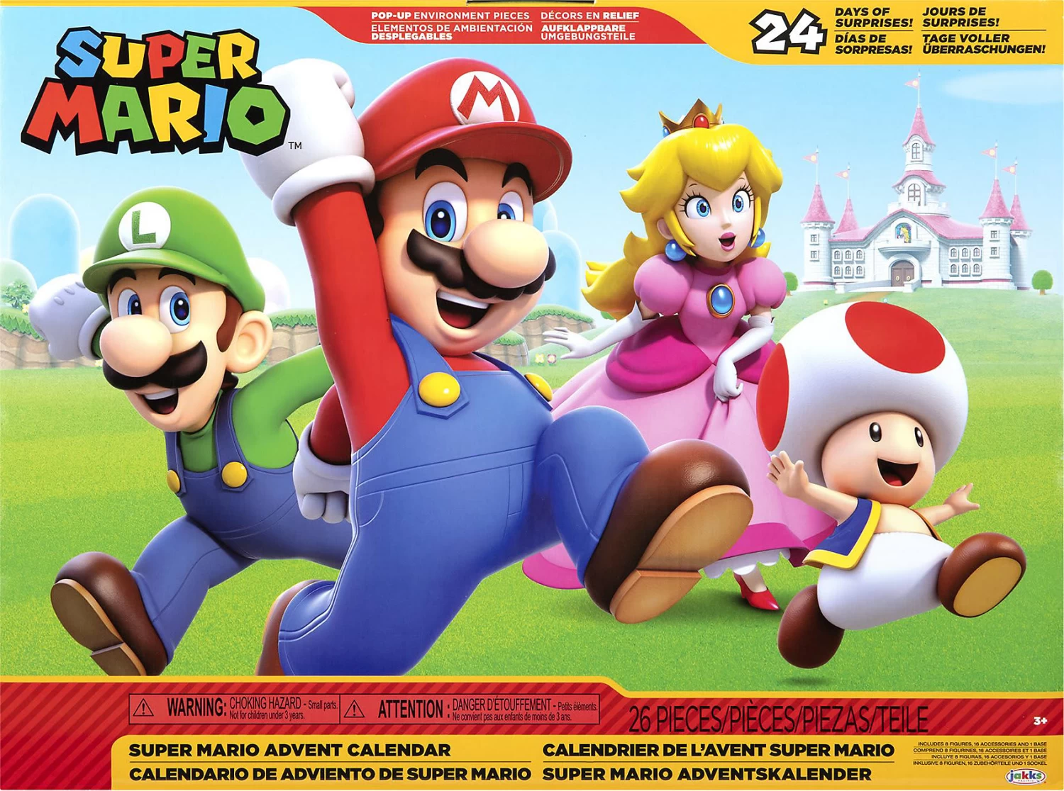 Der Adventskalender „Super Mario & Co.“ von Jazwares bietet den kleinen Fans der beliebten Klempner- Brüder jede Menge tolle Überraschungen! Damit man auch ohne Bildschirm mit den Lieblingscharakteren spielen kann, sind hier siebzehn Charaktere aus den „Super Mario“-Games sowie sieben tolle Accessoires enthalten. Inhalt: 17 Figuren 7 Zubehörteile Figurenmaße: ca. 6,5 cm Altersempfehlung: ab 3 Jahren