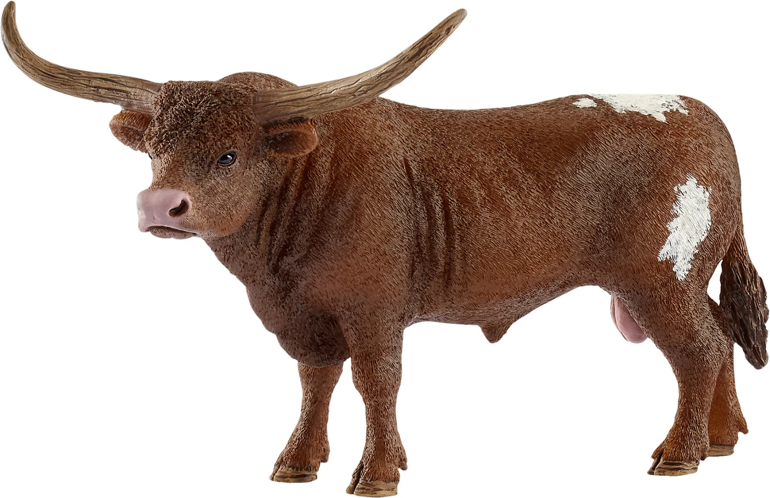 Die Schleich Figuren sind alle detailgetreu modelliert, liebevoll handbemalt und stehen für pädagogisch wertvolles Spielen. Von allen Rindern besitzen Texas Longhorns die längsten Hörner. Die ersten Ansätze sind schon in einem Alter von drei Wochen zu erkennen. Vom Kopf aus wachsen die Hörner seitlich weg und drehen sich leicht an ihren Spitzen. Wenn der Bulle etwa ein Jahr alt ist, haben sie schon etwa die Hälfte ihrer endgültigen Länge erreicht.