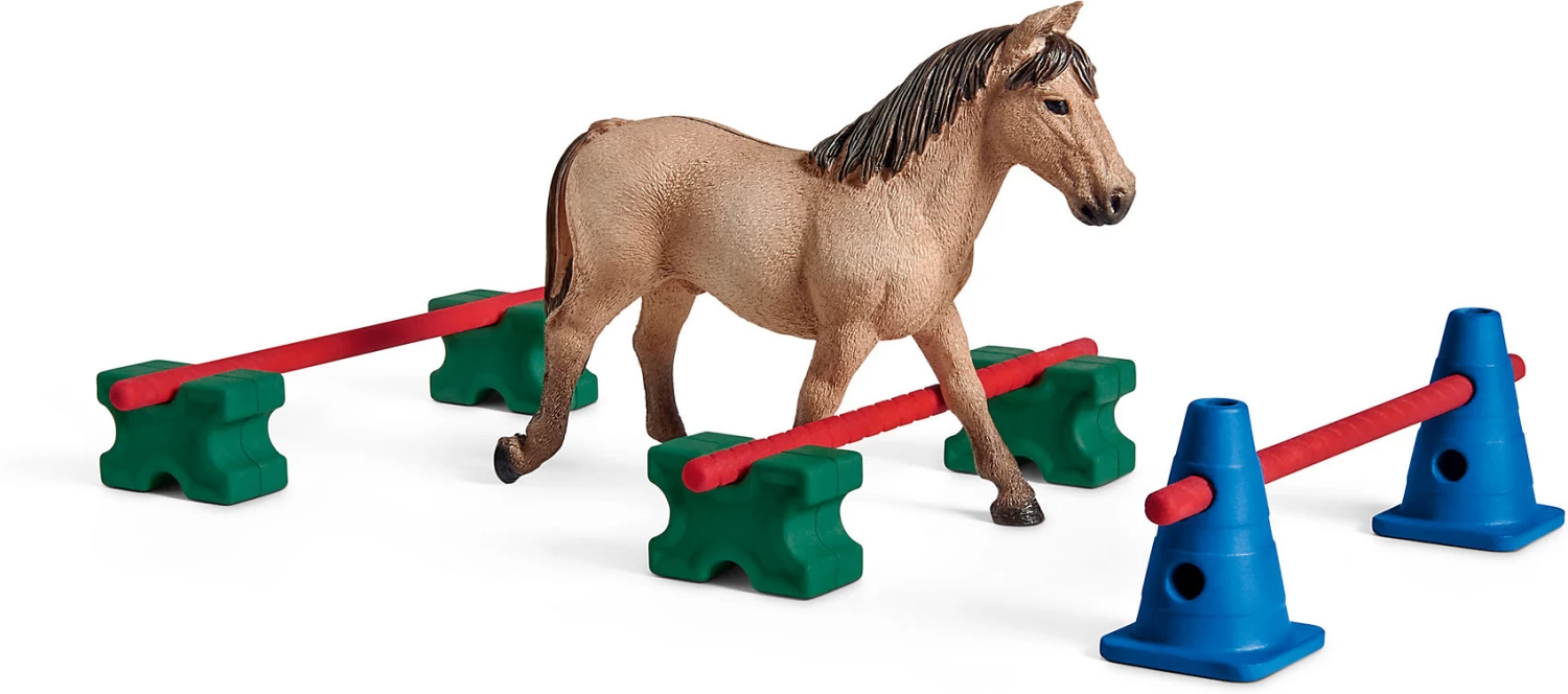 Phantasievoller Spielspaß von Schleich für alle Pferdefans. Die Marke ist für ihre besonders robusten Figuren bekannt. Die Schleich® Figuren sind alle detailgetreu modelliert und stehen für pädagogisch wertvolles Spielen. In diesem Set geht es mit dem Pony im Slalom durch einen Parcours. Die Markierungen können außerdem zu kleinen Hindernissen umgebaut werden. So ist beim Spielen stets viel Abwechslung geboten und das Pony kann zeigen, wie vielseitig es ist.