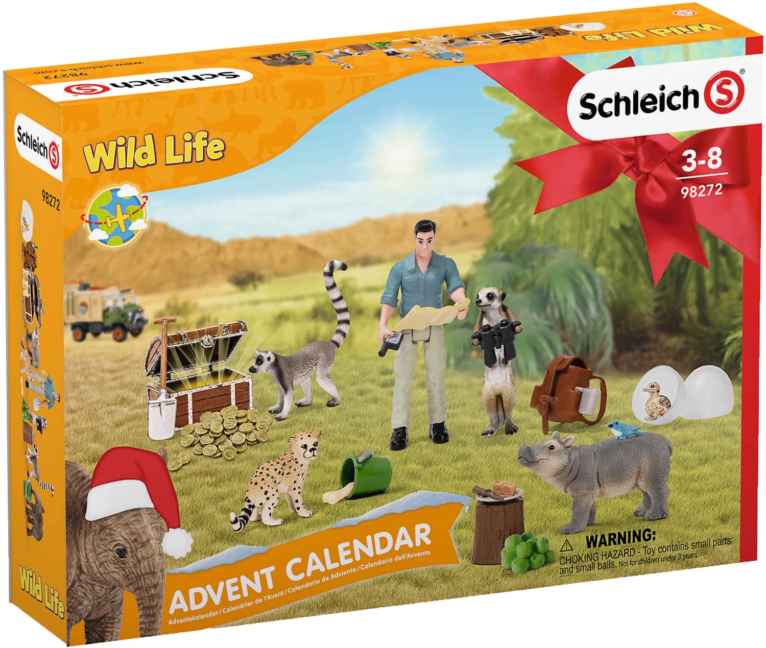 Der neue Schleich® WILD LIFE Adventskalender versteckt hinter 24 Türchen tolle Überraschungen und verkürzt so die Zeit bis zum großen Fest! Der Adventskalender beinhaltet viele tolle Tiere und jede Menge Zubehör für langanhaltenden Spielspaß. Der Inhalt lässt sich natürlich perfekt mit weiteren WILD LIFE Artikeln kombinieren. Die Schleich® Figuren sind alle detailgetreu modelliert und stehen für pädagogisch wertvolles Spielen. Die Schleich® Figuren sind detailgetreu modelliert und stehen für pädagogisch wertvolles Spielen. Der Artikel gehört zur Themenwelt WILD LIFE und ist für Kinder zwischen 3-8 Jahren geeignet. Dieses Set enthält 7 Tiere und tolles Zubehör! Inhalt: 1x Ranger, 1x Erdmännchen, stehend, 1x Afrikanisches Elefantenbaby, 1x Straußenbaby, 1x Nilpferd Junges, 1x Gepardenbaby, 1x Katta, 1x Kleiner Vogel 1x Fernglas mit Gurt, 1x Rucksack, 1x Eierschale, 1x Schatzkarte, 1x Telefon , 1x Messer, 1x Baumstumpf, 1x Knochen, , 1x Teller, 1x Blaubeer Kuchen, 1x Becher, 1x Äpfel grün, 1x Spaten, 1x Eimer, 1x Schatztruhe, 1x Geldmünzen