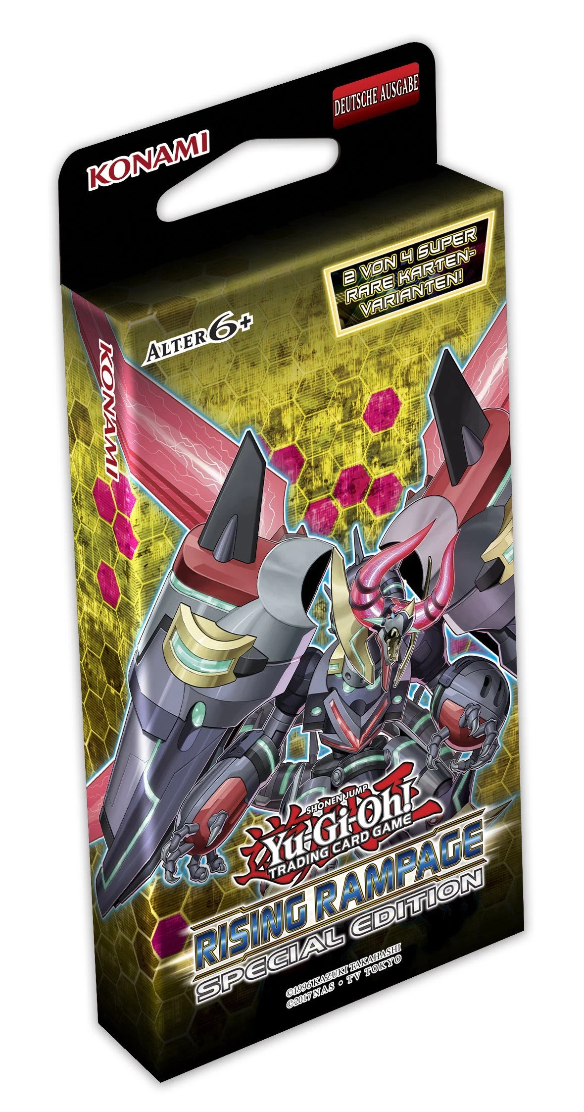 Die Rising Rampage Special Edition beinhaltet 3 Booster Packs der Erweiterung Rising Rampage sowie 2 von 4 zufällige holografische Promokarten.